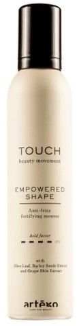 Мусс с фитокомплексом красных виноградных косточек обеспечивает сильную фиксацию и устраняет пушистость волос. Empowered Shape идеально подходит для укрепления структуры волос даже в небольшом количестве. Обеспечивает объем, четкость и устойчивость с длительным эффектом. Предназначен для всех типов волос, в особенности тонких.
