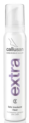 Специальная формула для экстремально сухой и гиперчувствительной кожи различной этиологии. Особенно рекомендуется для ухода за диабетической стопой. Пенка Каллюзан "Экстра" содержит комбинацию высокоактивных ингредиентов (стеариновая, молочная кислоты) с мочевиной, благодаря чему достигается необходимый уровень увлажнённости и эластичности кожи. Средство не содержит ароматические отдушки.