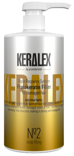 Продукт является неотъемлемой частью (2 шаг) 3х-шаговой процедуры молекулярной реконструкции волос Keralex Recovery System Pro и предназначен для реконструкции волос на молекулярном уровне, обеспечивая восстановление всех слоев волоса. Protokeratin Filler встраивается в поврежденные участки волос, укрепляя связи и «цементируя» структуру - кератин в составе укрепляет кортекс, а модифицированный растительный протеин восстанавливает и увлажняет кутикулу. Комплекс низкомолекулярных активных белков закрепляет действие всех ингредиентов.