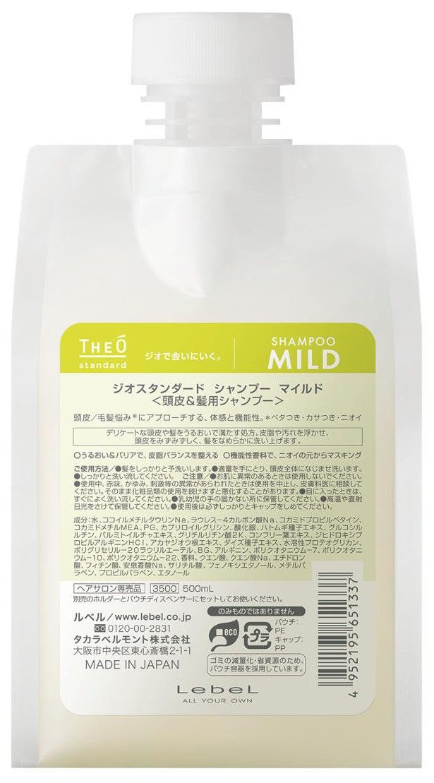Lebel TheO Standard Шампунь увлажняющий MILD 500мл Рефилл
